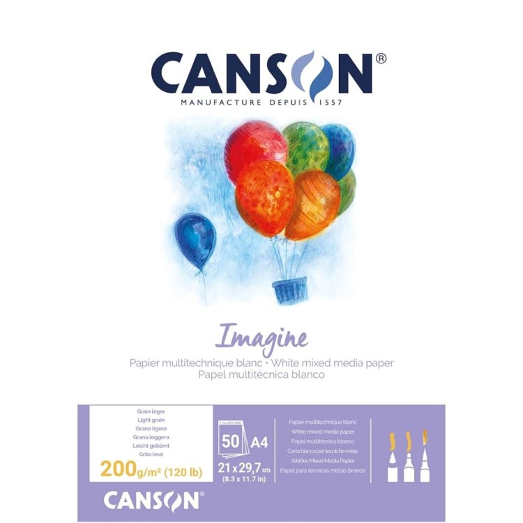 مقوا طراحی 200 گرم Imagine کانسون با بافت نرم و مقاوم، انتخابی حرفهای برای طراحان، نقاشان و دانشجویان هنر. مناسب برای انواع مداد، زغال، خودکار، جوهر و حتی آبرنگ سبک. بسته 20 عددی در ابعاد A4، کیفیت تضمینشده از برند معتبر Canson.
