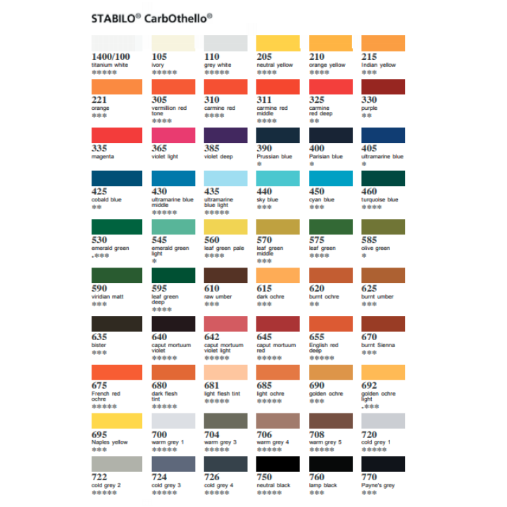 پاستل های مدادی CarbOthello در 60 رنگ متنوع؛ رنگهایی درخشان و متنوع که دقیقا همان احساس استفاده از زغال های طراحی را به شما می دهد.