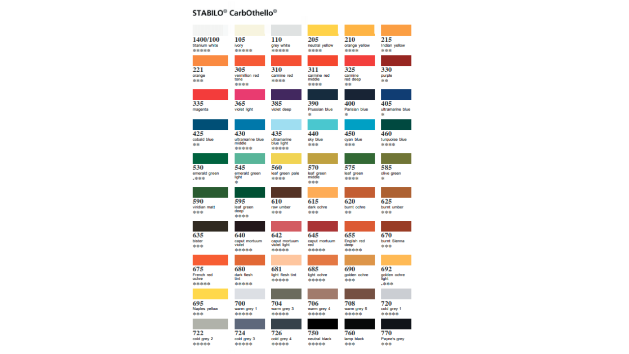 مجموعه ای خیره کننده از پاستل های مدادی CarbOthello در بسته بندی 60 رنگ؛ رنگهایی درخشان و متنوع که دقیقا همان احساس استفاده از زغال های طراحی را به شما می دهد.